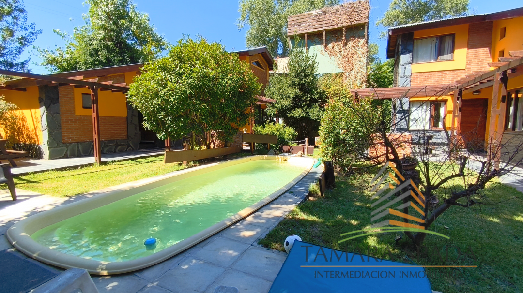 El complejo consta de cuatro cabañas conectadas por la pileta de natación, dentro de un ambiente boscoso y con vistas hacia la naturaleza.