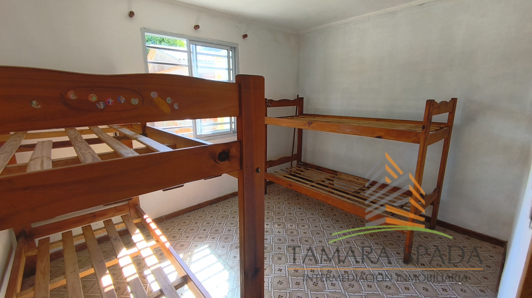 Cuenta con dos dormitorios, cocina comedor, baño, parrilla y gran jardín.
